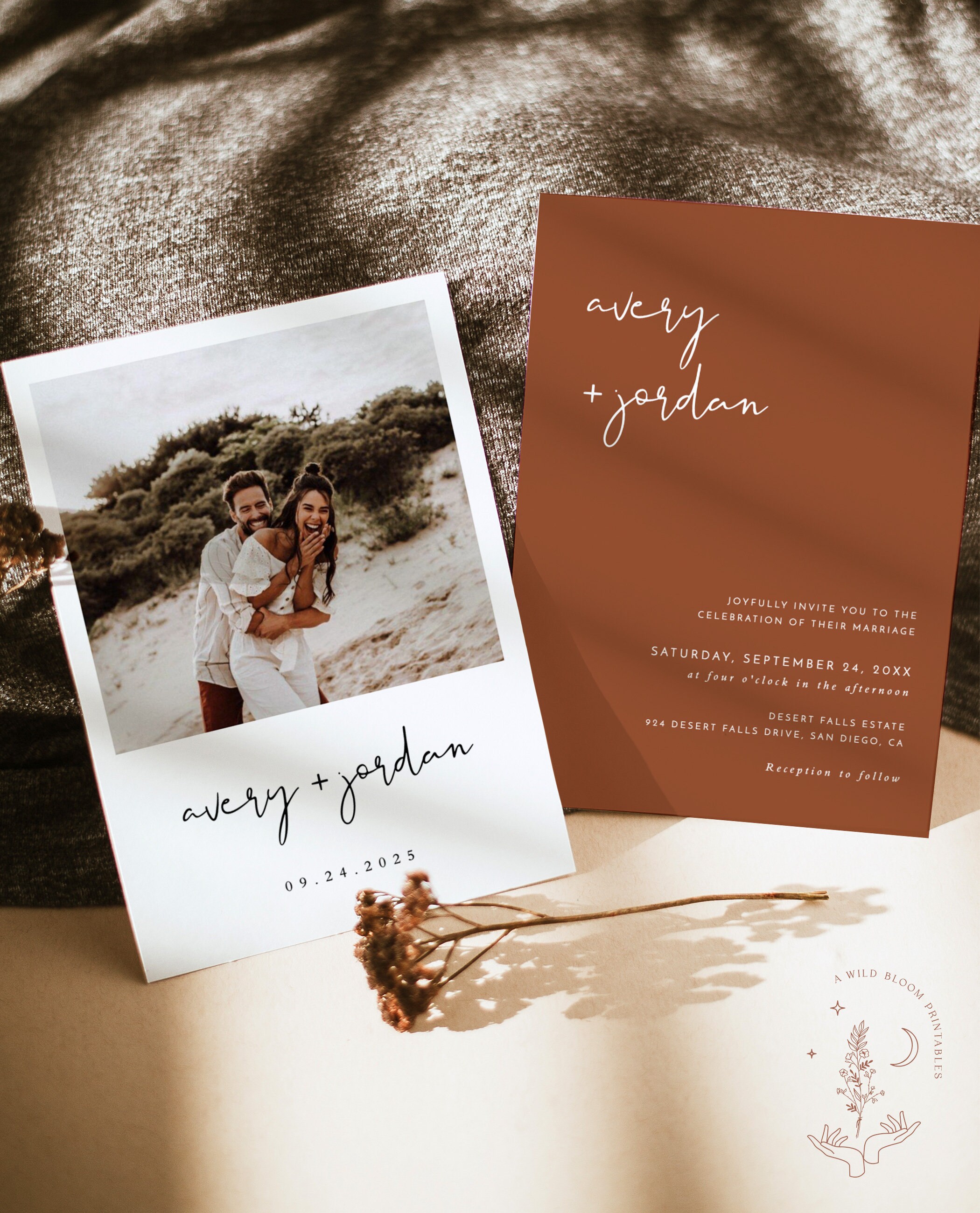 Minimalist Wedding Invitation Template Editable Terracotta Etsy