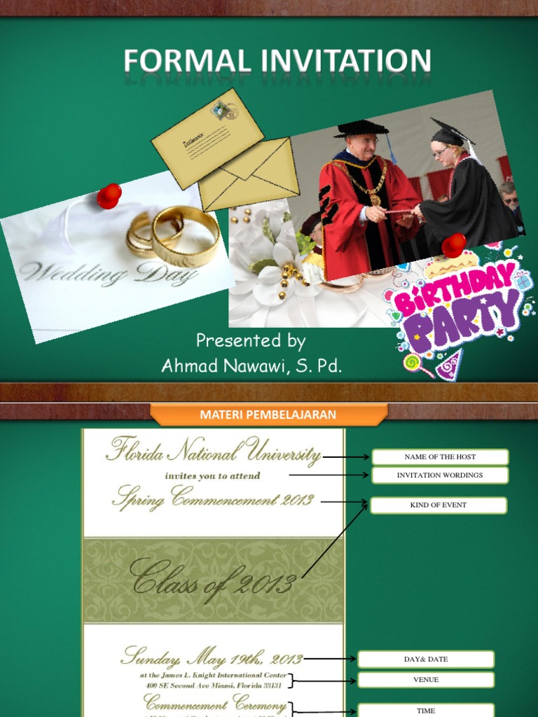 Formal invitation kelas xi. As you receive your diploma remember its just your ticket to the big game of life. Invitation Letter Bahasa Inggris Kelas 11. Well berikut adalah contoh RPP kurikulum 2013 mata pelajaran Bahasa Inggris kelas XI tentang Formal invitation atau dalam Bahasa Indonesia dikenal dengan undangan resmi.