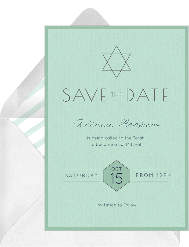 Simple Bat Mitzvah Save The Dates In Green Greenvelope Com